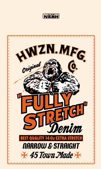 そんな思いでHWZNの代表のヤス君に相談したら「いっすね〜」と思った以上に軽〜く同意してくれた。ある意味そこまでデニムとはこんなものだって堅苦しい考えを持たないゆる〜いヤス君が最高w で、たまたまお坊さんなのにデニムが好きでデニムを縫製しているボーズソーイングの前野代表と知り合った。話せば話す程変態ぶりが伝わってきてぜひこの男に縫って欲しい!そんな想いからの金沢コラボで行こう〜!と盛り上がって出来たのが、HWZN FULLY STRECH DENIMです。