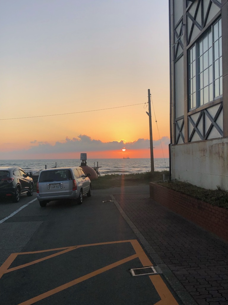 美しい〜、柄にも無く素敵な夕日に見惚れちゃいました。おじさん達は夕日に弱いらしく、みんな写真撮ってました。