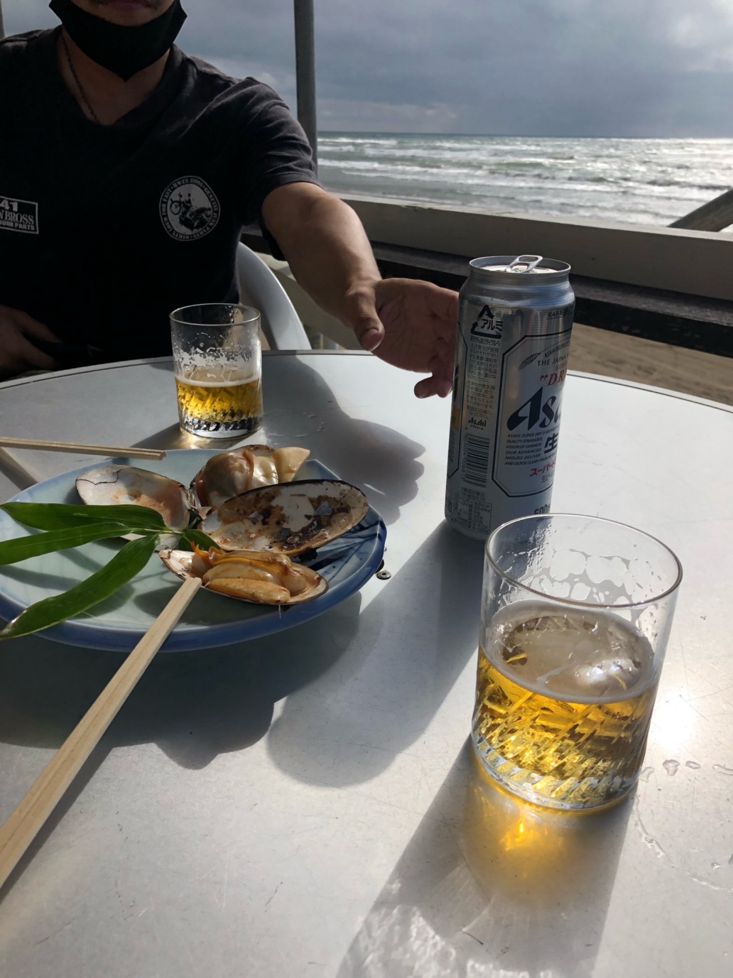 寝てたら、起こされた!まじで寝てました…。さ〜起きてもする事ないから貝を食べよう!ドクター中川と2人でビールも半分こw この人こう見えても立派な外科医なんです。骨折れた時にはたまに相談に乗って貰いますw ま〜たまに役に立つ人です(笑)