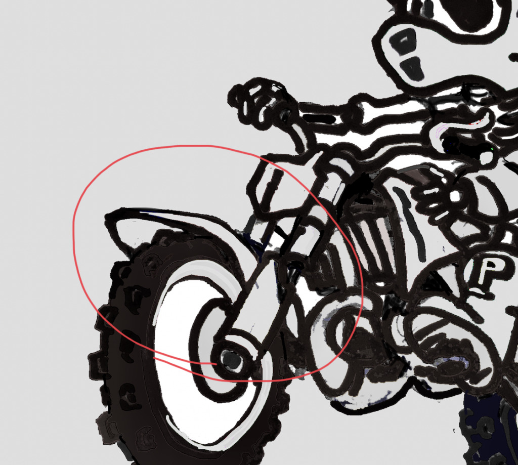 手直ししてる内にもう少し角度を付けないとただウイリーしているだけにしか見えなかったりなかなか大変です。他の大御所からなんかフェンダーが低くない?ってご指摘が・・。