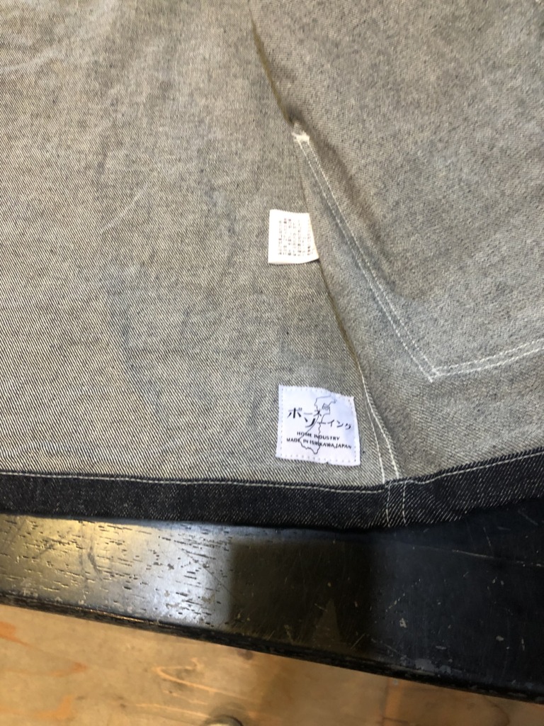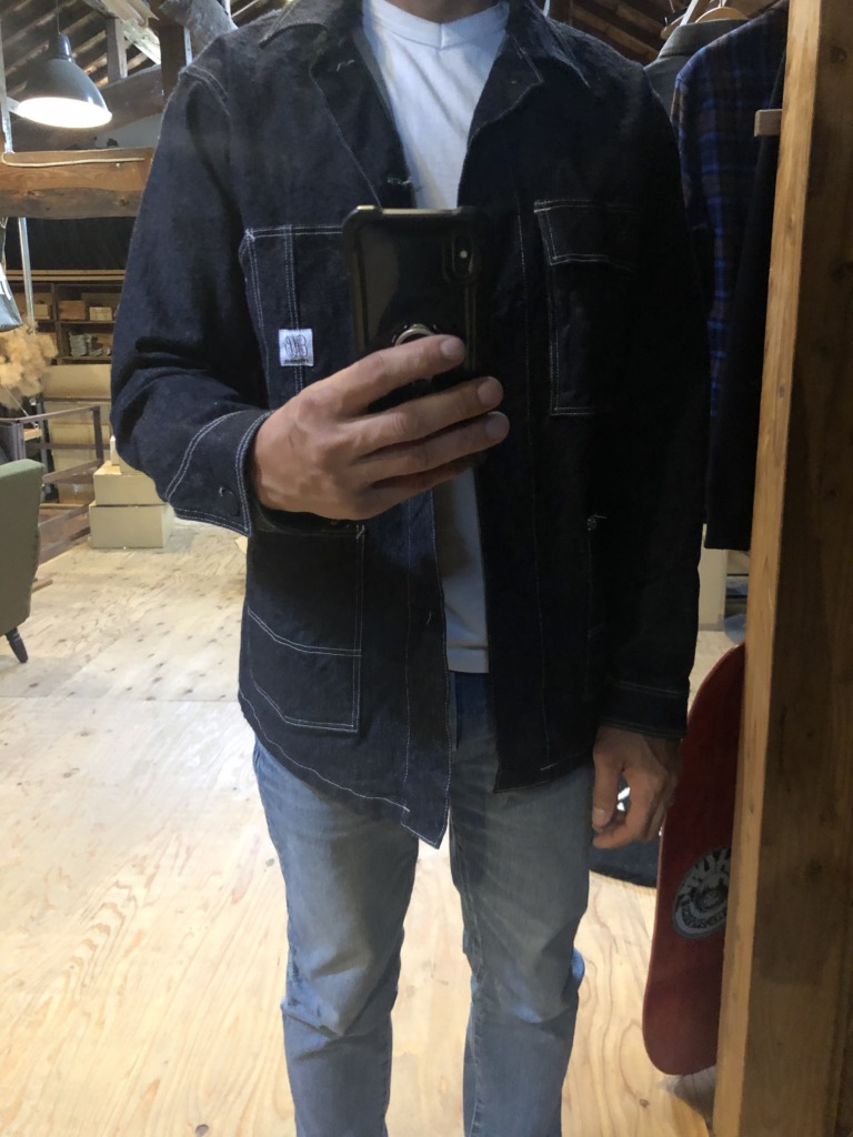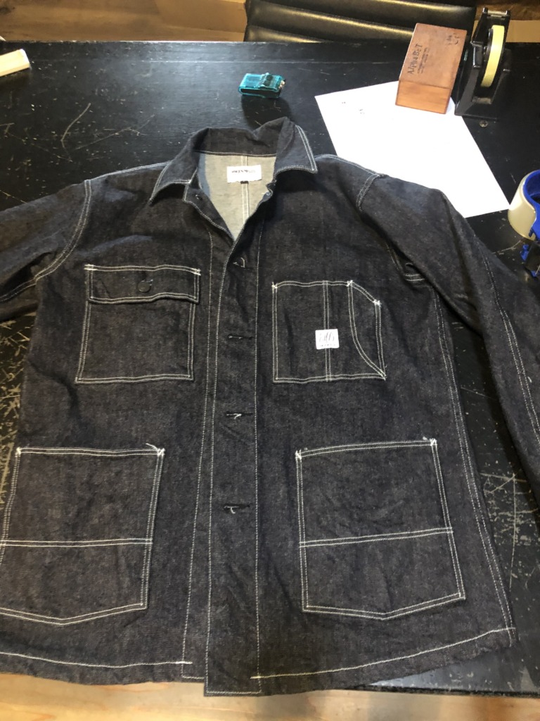 自分にはカバーオールはあまり似合わない!そう言う結論を自分の中で固まりつつ自分では頼んで無いけどサンプル費用どうする?って相談されて「う、うん。請求して!」っていわざるを得ないw とは言えその時は仕事的には関係ないと言う事で経費では落とせず個人的に買い取りましたよ…涙 中で1番年上だしね…でも、最初セルビッジのが1着できててその後になぜか広幅の生地でももう1着出来上がって来てて、それも頂く事に…笑 男はつらいよ!