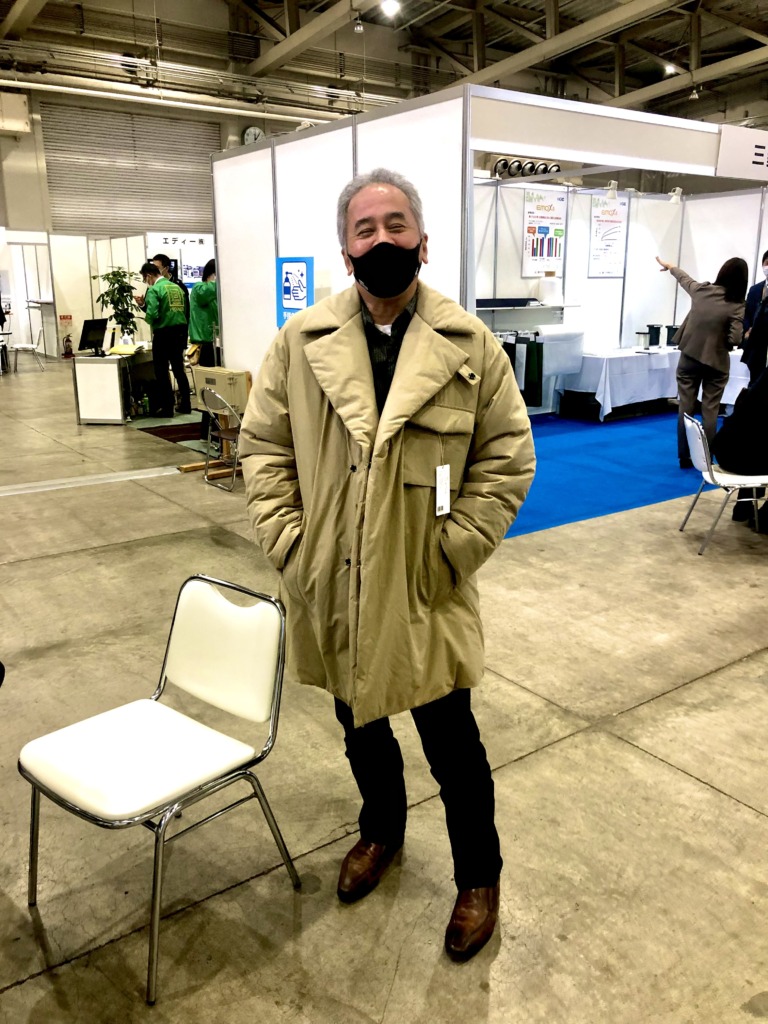 そんな折りですが、せっかく北陸ヤーンフェアに行くならちょっと対面で物を売ってみよう!という事で行って来ました。コロナで自粛していた出張や展示会も解禁になったばかりと言う事も有り非常に盛況です。もちろん良く知ったお客さんも沢山来てくれて、懐かしい人にも会えたりと充実した2日間でした。その中で対面で商品を売って行く勉強がてらまずは知り合いに自分がいいと思う物を勧めて見ます。その人が普段絶対買わないだろ〜な〜って感じだったり、その人の好みじゃなくても似合う服が有るって言う事を客観的に伝えさせてもらいその服を着て出掛けたくなるように思って貰える…そう言うの楽しいな。