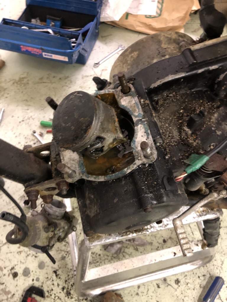 シリンダーは錆びているけど、焼き付いた傷は無いので、ホーニングして見た。でもサビのエクボが出ていたので、これはワンサイズあげた方が良いのかな〜。ちなみにピストンサイズはスタンダード。