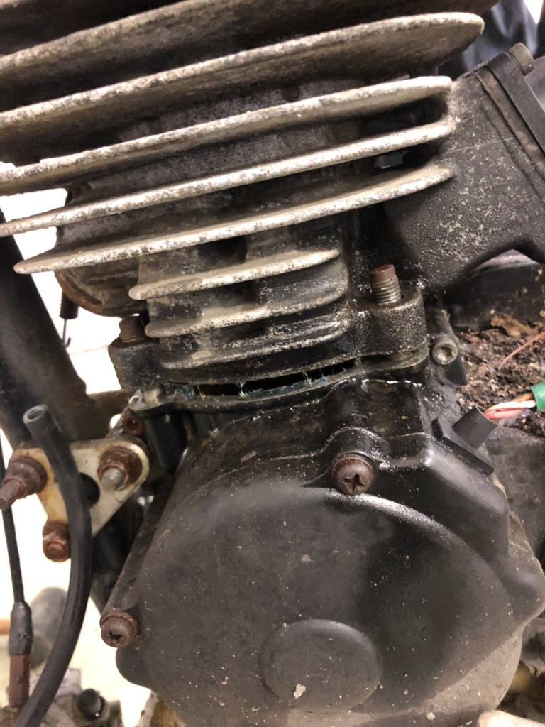 ・・・な、何で??良く見るとクランクケースに水が溜まっている😱
